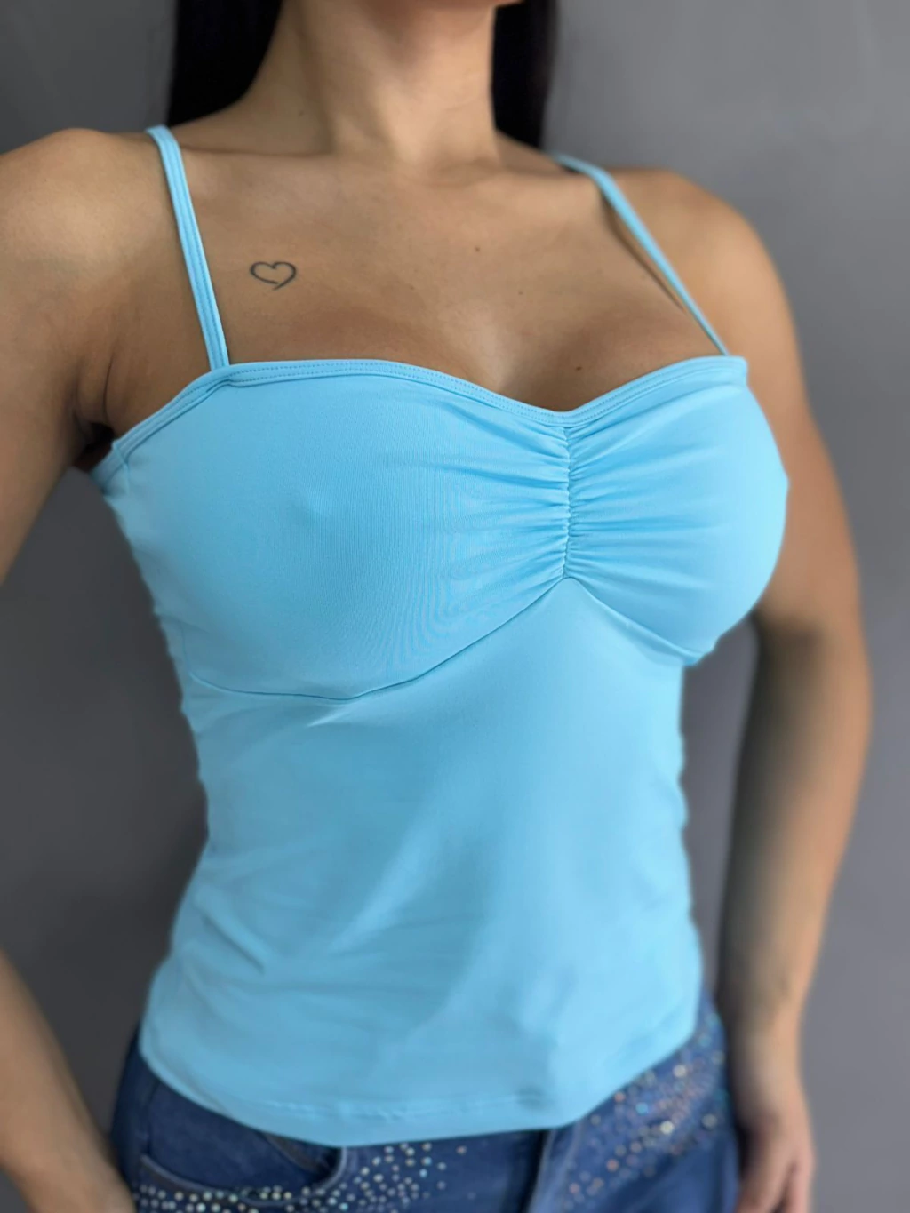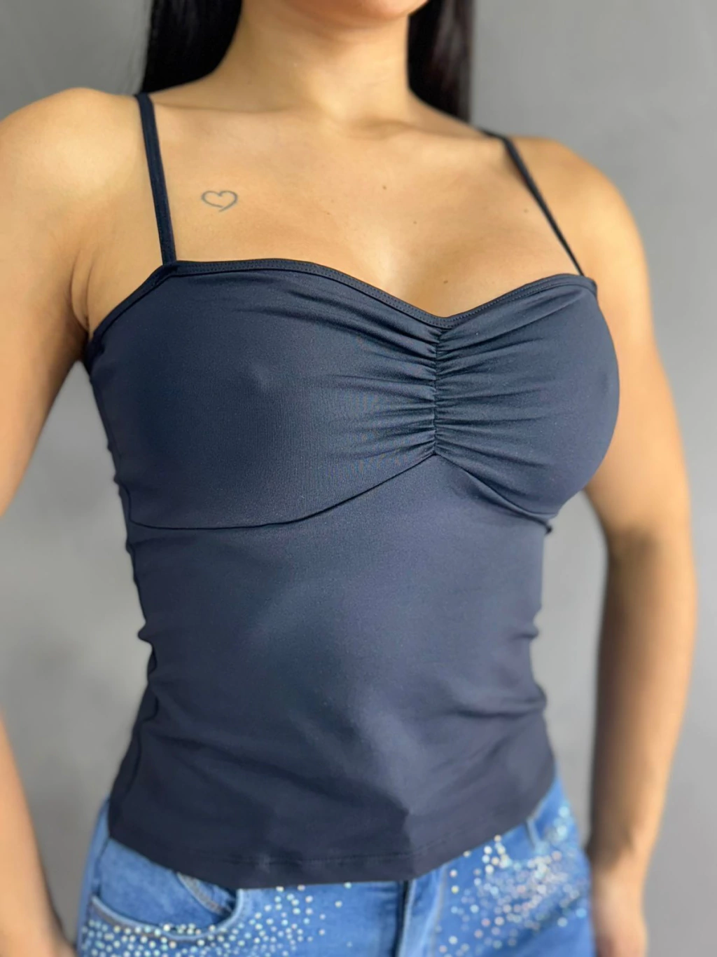 Eleve seu estilo com a nossa Regata Franzida, feita em tecido suplex de alta qualidade que garante conforto, elasticidade e toque macio à pele. A modelagem franzida adiciona um charme especial, valorizando a silhueta com elegância e modernidade.